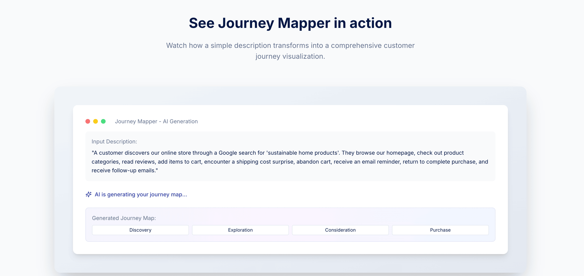 Transform natural language descriptions into customer journey maps with AI assistance.