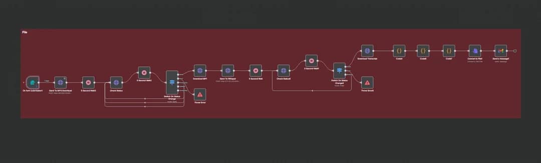 – Uses self-hosted services for downloading the MP3 and running the transcription (no cloud limits, full control)